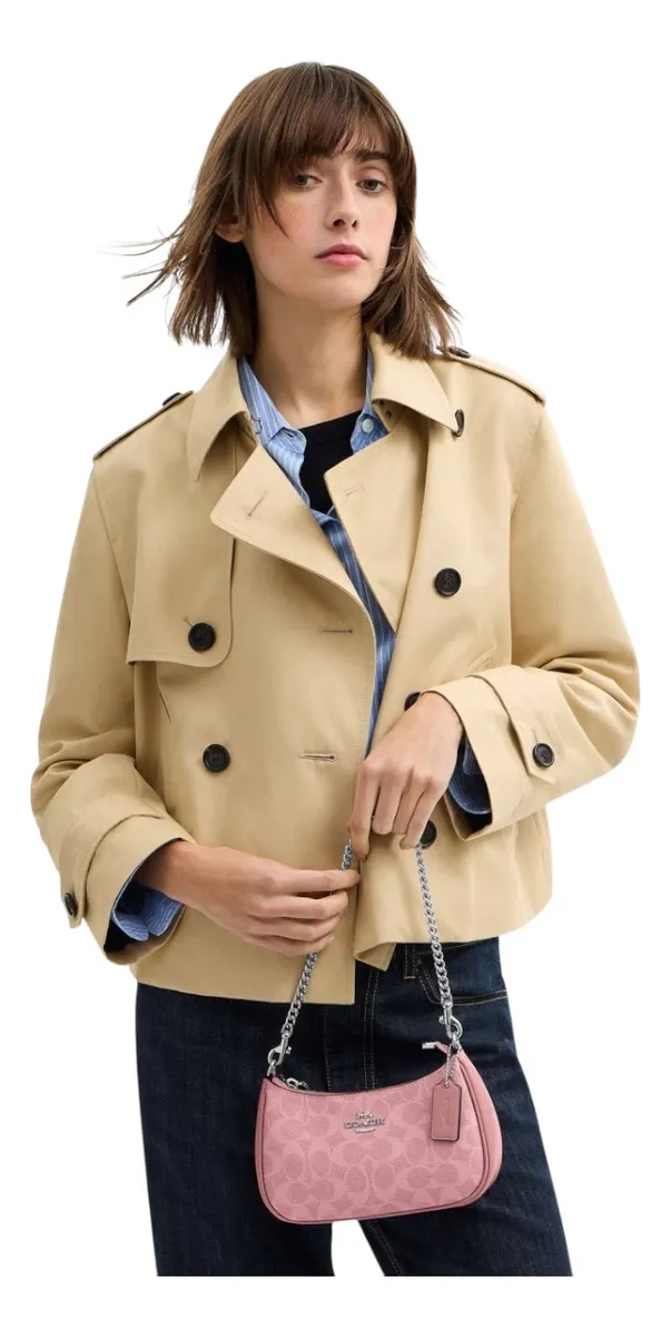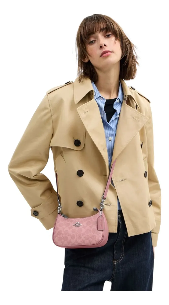 La bolsa Coach original Teri es ideal para llevar lo esencial con estilo. Su tamaño compacto de 24cm x 15cm permite usarla en diferentes ocasiones, desde el trabajo hasta una salida nocturna. El signature canvas rosa combina con cualquier outfit, convirtiéndola en una pieza versátil para tu guardarropa.